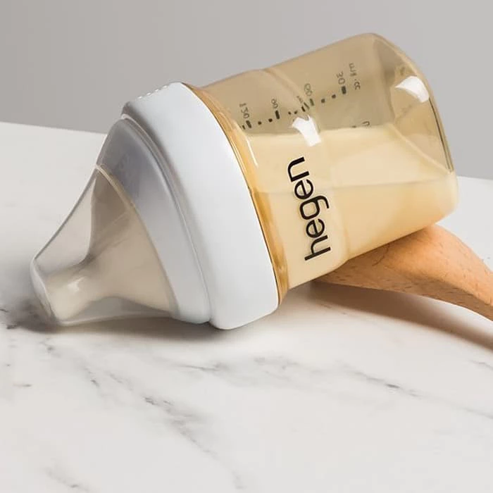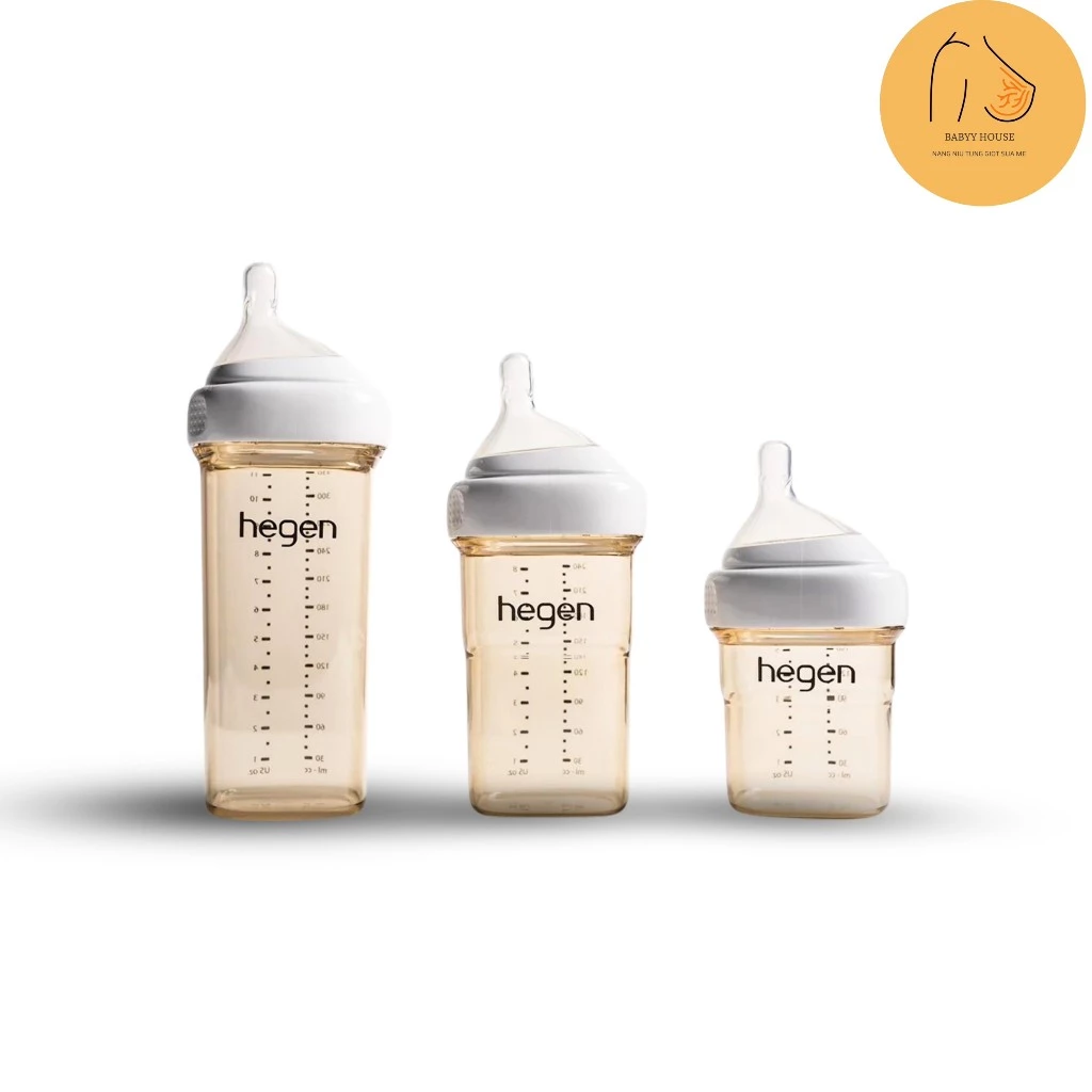 ➖ Bình sữa Hegen với thiết kế đầu núm ti không nằm chính giữa bình mà nghiêng 1 bên giúp bé bú được đến tận giọt sữa cuối cùng.